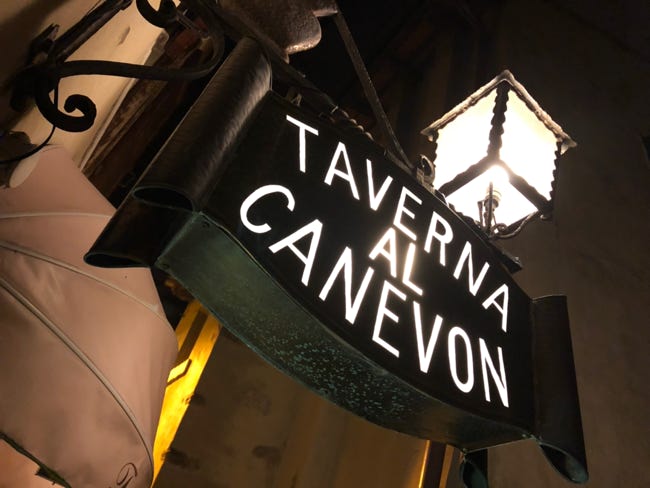 Nel cuore della GRADO ANTICA a due passi della casa natale del Poeta Biagio Marin e dalle Solenni Basiliche " La Taverna al Canevon " in Calle Corbatto,si fa custode oramai di un antica testimonianza nella ristorazione. L' esperienza e l' originalita' dello chef Pino Verginella coadiuvato dai figli Fabio e Gianluca consigliano una cucina tradizionale a base di pesce ,regionale ed internazionale di raffinato gusto " EL BORETO " associando i migliori vini tipici del vicino Collio . una accogliente sala in uno spazio attiguo alla Calle , un grazioso giardino ricavato da un' antica corte manifestano i requisiti e la simpatia del figlio Alessandro e dei suoi collaboratori .